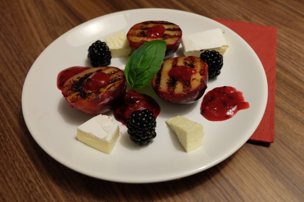 Kremowy i delikatny, krowi ser Saint Andre świetnie komponuje się z grillowanymi śliwkami i jeżynami. Dodatkowo kisiel ze świeżych malin i jeżyn podpatrzony u Teściowej (serdecznie pozdrawiam 😉 )